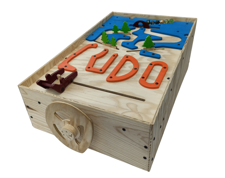 Prenez le volant de Ludo-Kart, un jeu en bois géant, entièrement mécanique, aussi coloré que captivant ! Dirigez votre voiture à l’aide du volant : chaque mouvement anime le décor, libérant ou bloquant les billes sur le circuit.