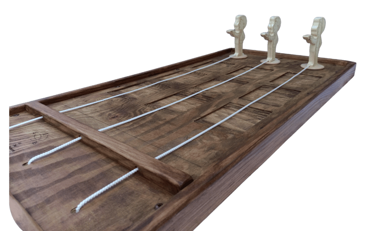 Il faut tirer rapidement, mais délicatement, sur la ficelle pour faire avancer le serveur sans renverser le plateau. Le premier à terminer le parcours sans catastrophe remporte la victoire !