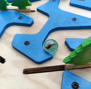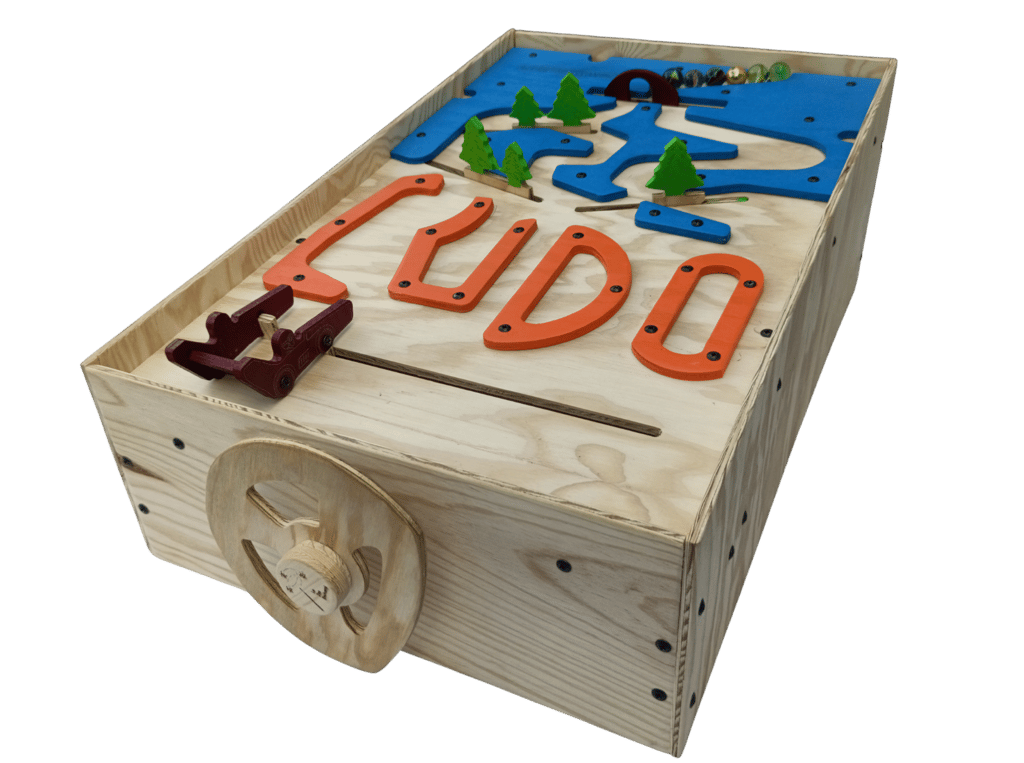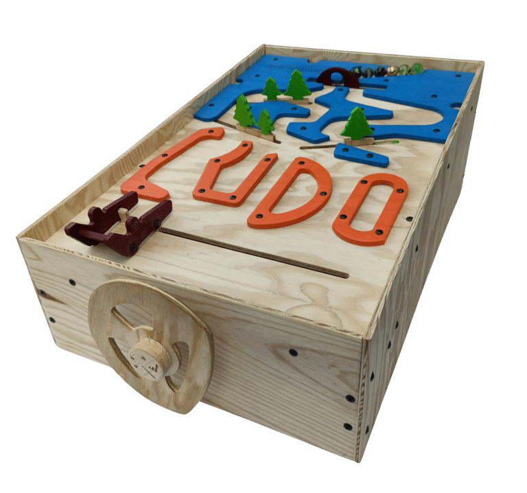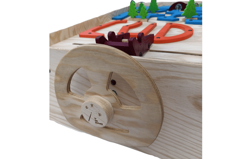 Prenez le volant de Ludo-Kart, un jeu en bois géant, entièrement mécanique, aussi coloré que captivant ! Dirigez votre voiture à l’aide du volant : chaque mouvement anime le décor, libérant ou bloquant les billes sur le circuit.